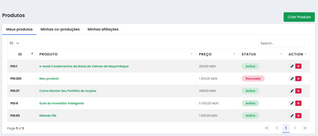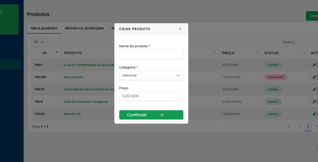 - Depois, do lado direito, clica em “Criar Produto”